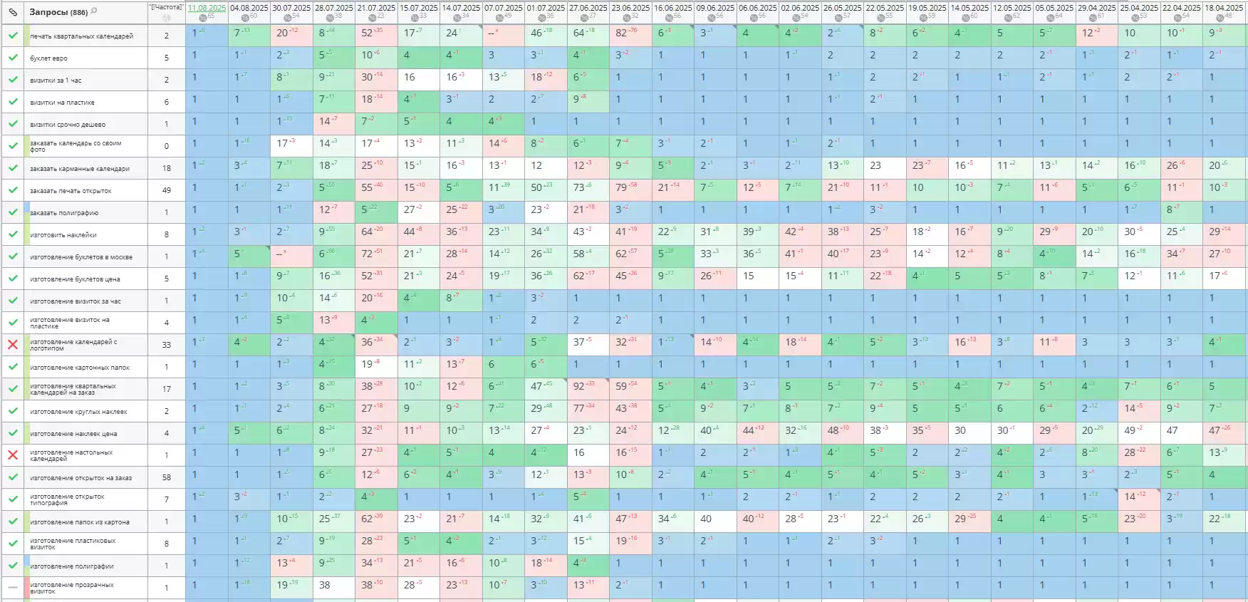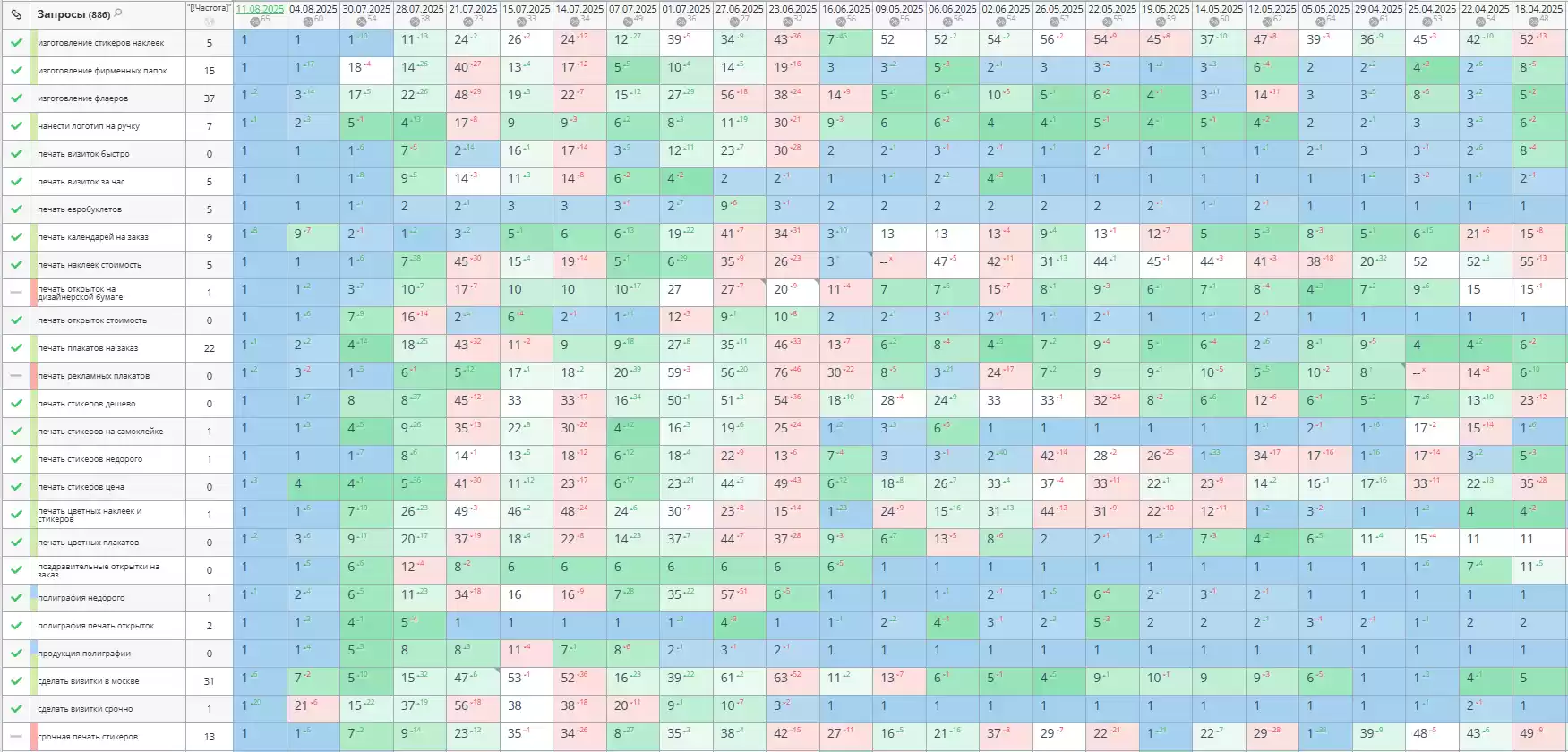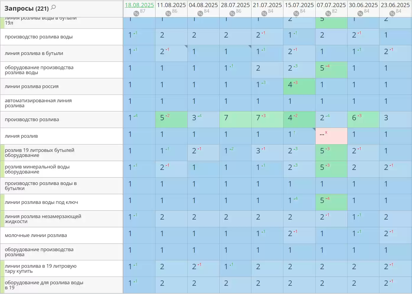 - Позиции по запросам