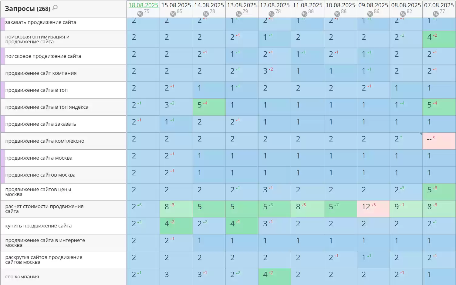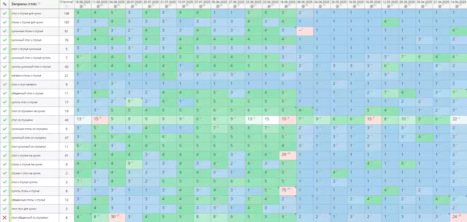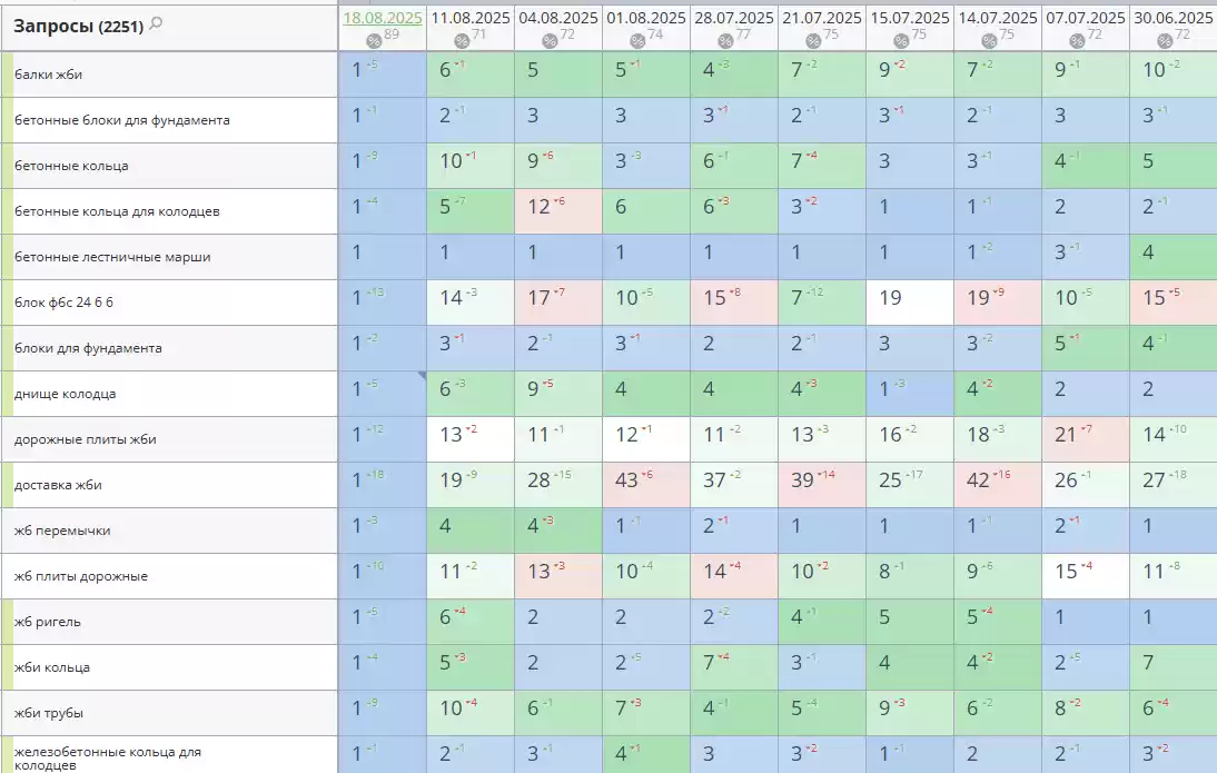 - Позиции по запросам